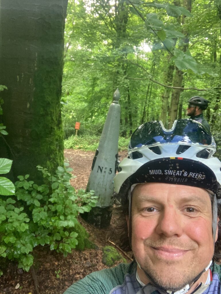 Grenspaal 5 staat mooi verstopt in de bossen. Nog niet zo gek als NÂș6 (deze staat wel aan een paadje). Aangevlogen via het vakantiepark Trois Frontieres.