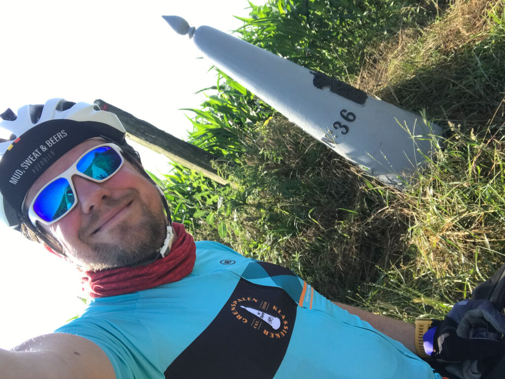 Tijdens de Grenspalenklassieker Xtreme 2021 bezochten we paal 36 de eerste keer. Op zich niet moeilijk; deze paal staat pal langs de (onverharde) weg.