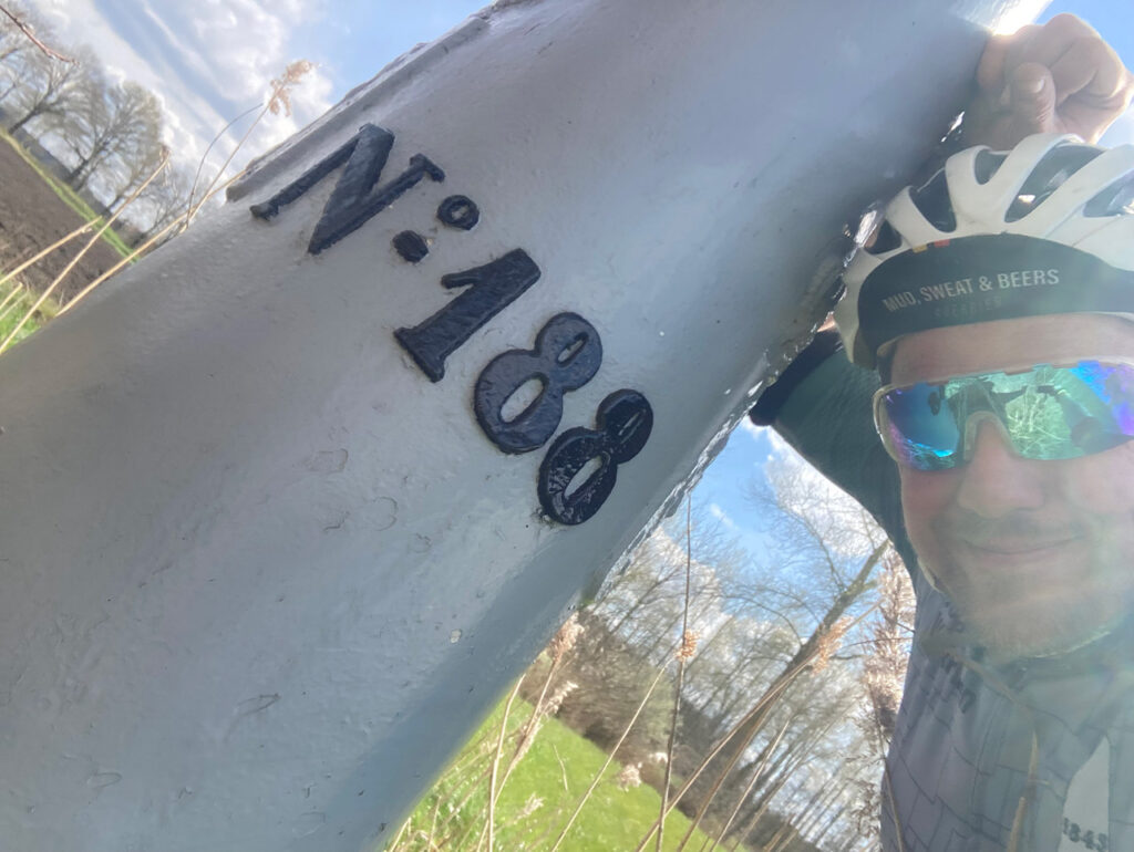 Lang leve Google maps en verder aan de rand van het weiland paal 188 gevonden. Weer een paal van de lijst!