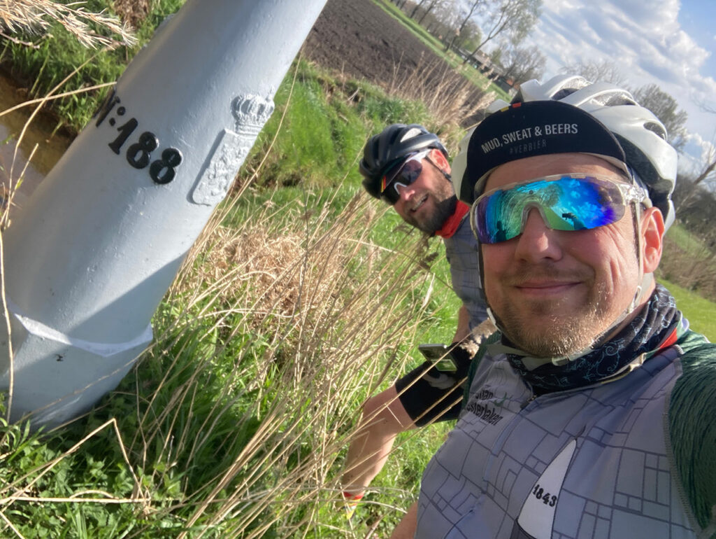 Gelukkig kwamen we er op tijd achter dat we niet een grenspaal aan het bejagen waren, maar een boomstronk door een onbegaanbaar stukje BBB-stikstofnatuur met allemaal prikkers…
